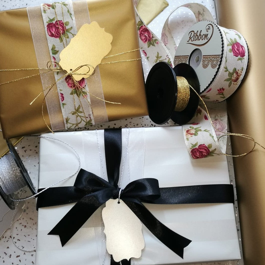 Ahead of the 2018 Festive Season, we've launched our unique Luxury Gift Wrap. For a small fee of R35, we'll wrap your holiday gifts in a metallic gold gift wrap. To give it that extra edge, we'll add two stunning ribbons i.e. clear organza and red printed Christmas-themed ribbons. As a finishing touch we'll add twine and a gift tag. See picture below.